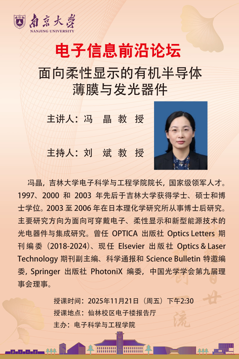 《面向柔性显示的有机半导体薄膜与发光器件》2025.11.21下午14:30