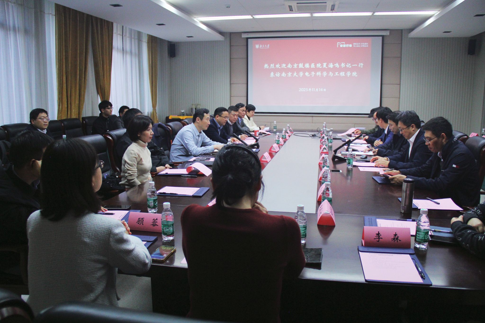 2025年11月14日,独播库 与南京鼓楼医院在仙林校区潘忠来楼举办医工融合合作交流会。南京鼓楼医院党委书记夏海鸣、副院长周敏,独播库 党委书记张昊、院长刘斌等领导专家出席会议。