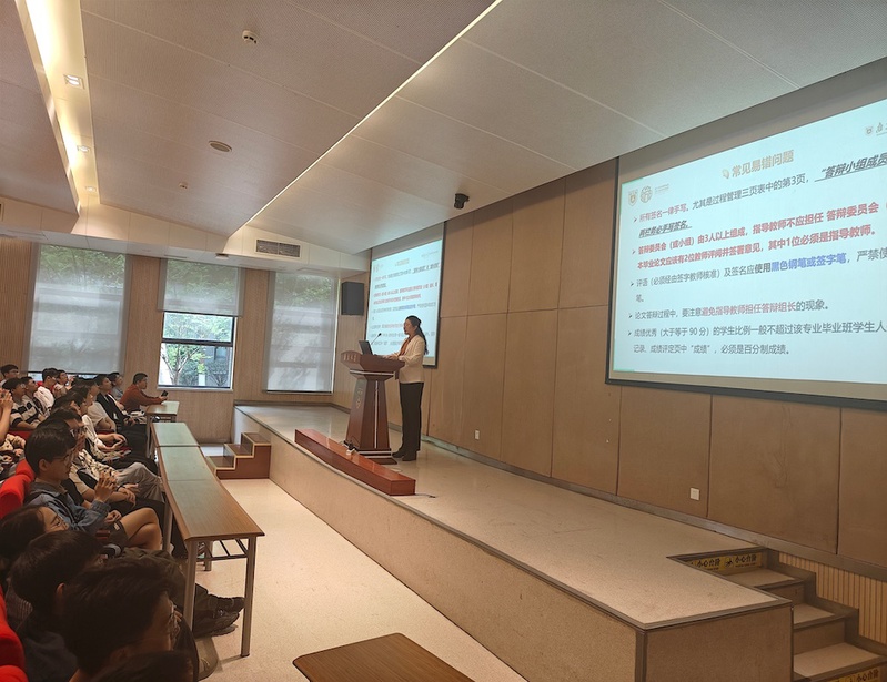 讲座精彩纷呈,分为两大板块。首先,学院教务员兼教学秘书陈嘉艳老师深入解读了毕业论文的时间节点与进度安排,着重强调了按时完成初稿撰写、教师评阅、论文查重以及答辩等关键环节的重要性。她还对论文的语言、字数、格式等撰写规范进行了详细说明,让同学们对论文的“外在”要求了然于心。此外,陈老师针对存档环节,详细介绍了电子文档的命名格式与存档内容,确保同学们在毕业论文的“归档之旅”中也能做到规范有序。