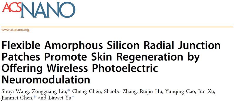 在皮肤伤口愈合过程中,感觉神经的修复常常滞后于表皮组织的恢复,造成神经功能恢复不完全,影响患者健康和生活质量。近年来,外部电刺激因其能够促进神经突起生长、提升伤口愈合效率,在加速神经再生领域展现出广阔前景。然而,现有临床电刺激手段大多依赖经皮导线传输,操作复杂、感染风险高,且易引发患者不适。相比之下,光电刺激技术通过将光能直接转化为电信号,能够实现远程、精准的非接触式调控,为术后感染控制和神经系统的无创/微创调控提供了新思路。在众多光电材料中,硅(Si)因其优异的半导体特性与良好的生物相容性,被广泛视为理想的光电活性材料。基于团队提出的低温自组装气-液-固(VLS)生长策略(详见附录),已在柔性金属基底(如铝箔、不锈钢箔)上构筑了具高效光吸收能力的三维径向p-i-n结(RJ)硅纳米线(SiNW)结构,并应用于心脏起搏与脉搏检测等场景。但在长期神经调控等生物组织接触场合,该类结构仍存在机械匹配性差、刺激效率衰减等问题,亟需在材料设计与界面工程方面进一步优化。