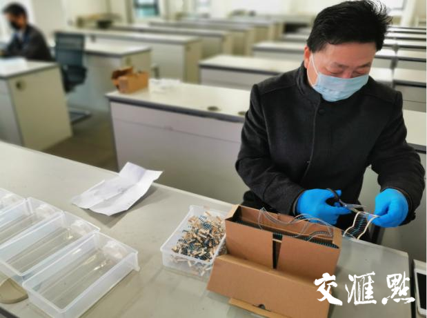 From april the 13th, all the teachers of the electronic experiment center began to make love " gift bag" by packing electronic components and test boxes in an orderly manner.