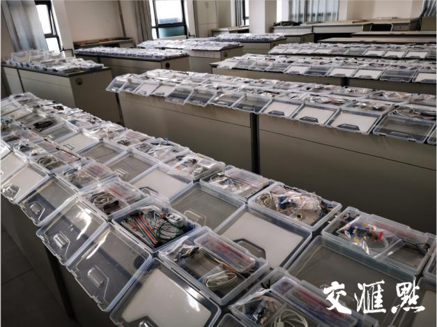 The teachers divided the resistive capacitance and the integrated chip of different nominal values into one component package according to the requirements of the experiments. Each component package contains: 14 kinds, 52 pieces of resistance; 5 kinds, 16 pieces of capacitance; 10 pieces of diode; 2 kinds, 8 pieces of chip; 2 pieces of switch, a total of 214 components package, a total of 18832 electronic components, these devices and "pocket instrument" experimental box in storehouse of the electronic laboratory center (contains experimental box: oscilloscope, signal source, simple power supply, equipped with two doors of electronic components and cable package for students) were packaged to students together.