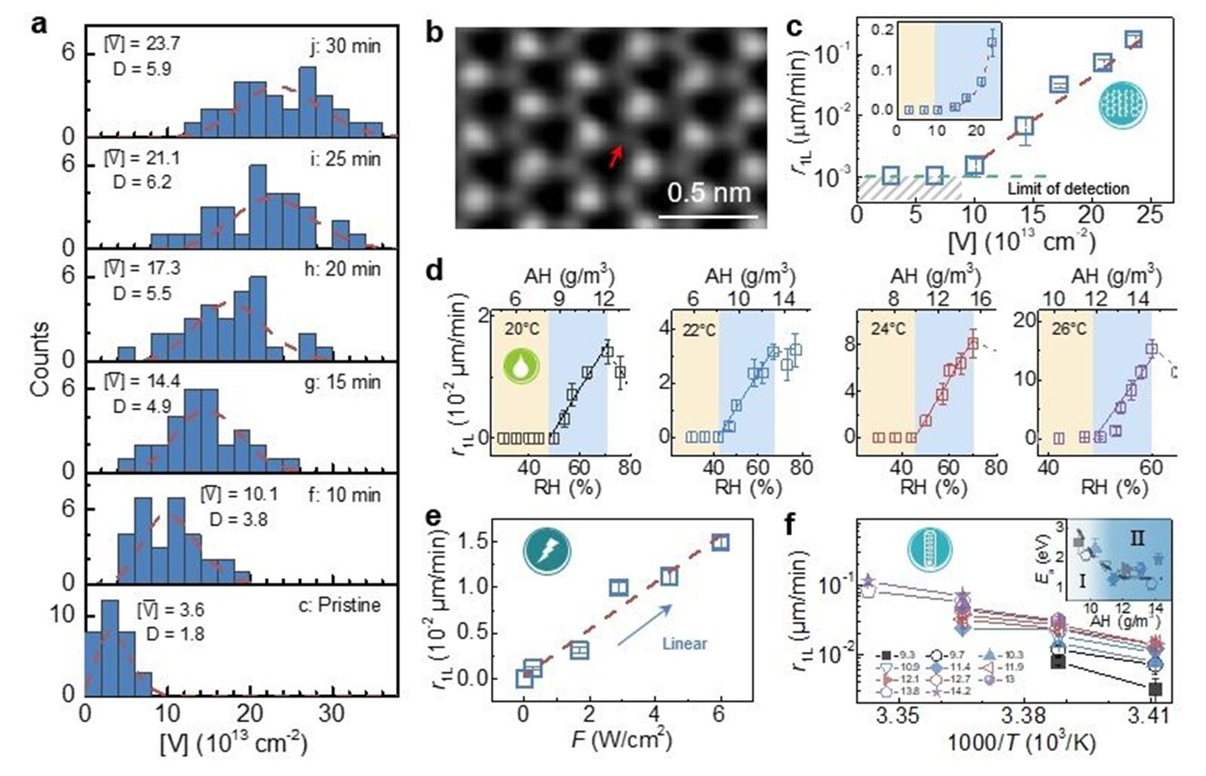 Fig. 2: Multiparametric survey on oxidation kinetics in 1L WS2 .