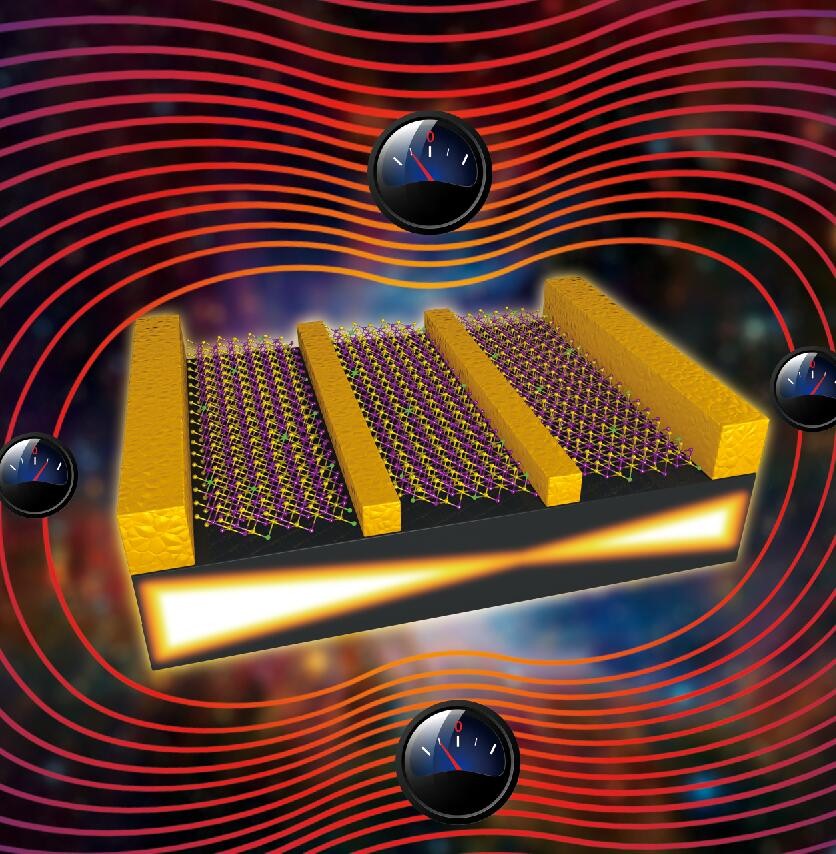 为解决经典计算机的热耗散问题,以调控自旋为核心的自旋电子学为后摩尔时代电子信息技术的跨越式发展提供了革命性机遇。针对极低功耗电子器件需求,系统地开展了新型拓扑电子材料与器件研究,基于拓扑绝缘体表面态拓扑量子相变效应,制备了室温三轴矢量磁传感器[3]。更重要的是,该原型器件的三轴矢量磁场探测的工作温度可达到室温。这是基于拓扑材料的电子器件极少数能持续工作至室温的范例,预示着极大的实际应用前景。