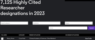王欣然教授荣获2023年全球高被引学者!