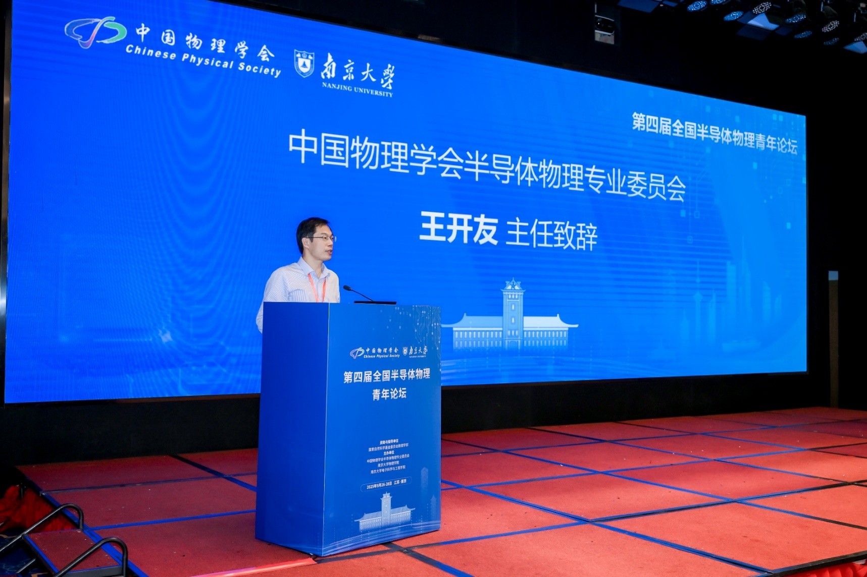 开幕式由南京大学物理学院缪峰教授主持。国家自然科学基金委员会数理学部物理一处副处长姜向伟、中国物理学会半导体物理专业委员会主任王开友出席并致辞。