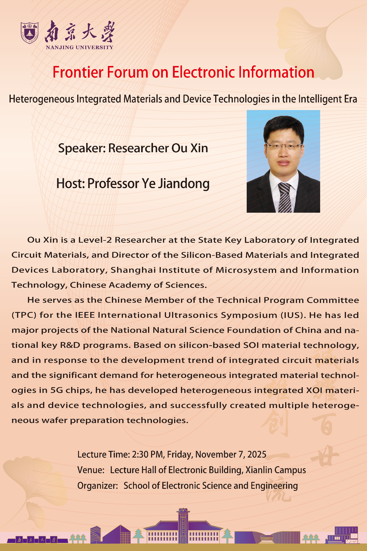 Venue: Lecture Hall of Electronic Building, Xianlin Campus
